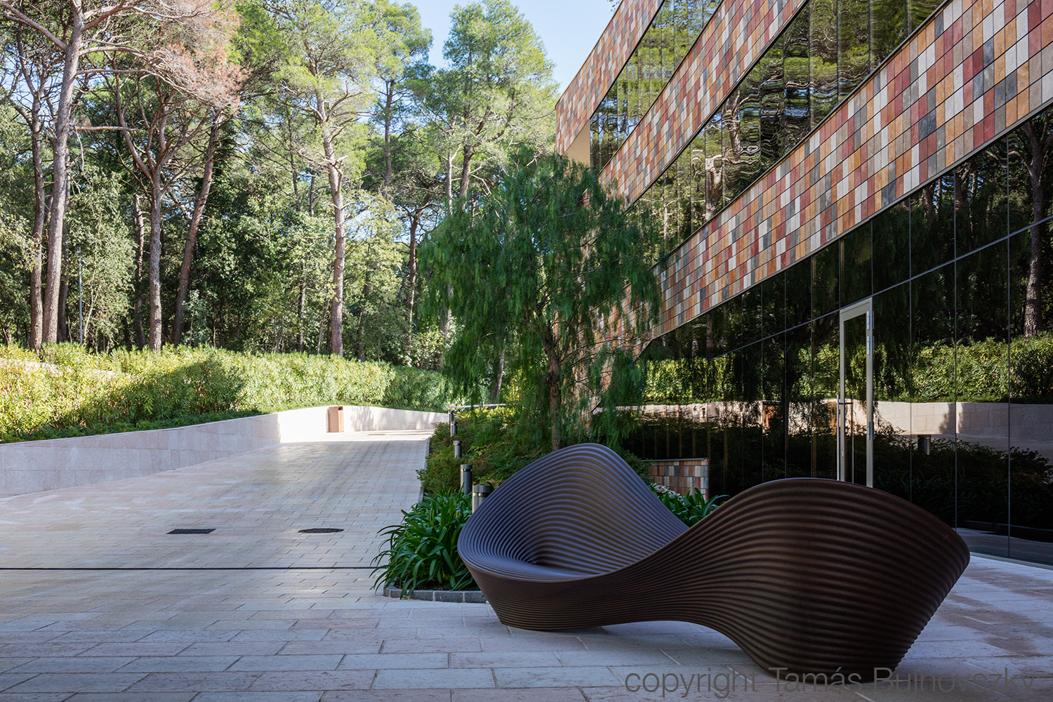 Slijedom ideje da je arhitektonski koncept rekonstrukcije i dogradnje ovoga kompleksa primarno htio zadržati ambijent sa postojećim mediteranskim zelenilom i borovima kao zaštitnim znakom, nova građevina je smještena sjeverno, iza postojećih građevina.